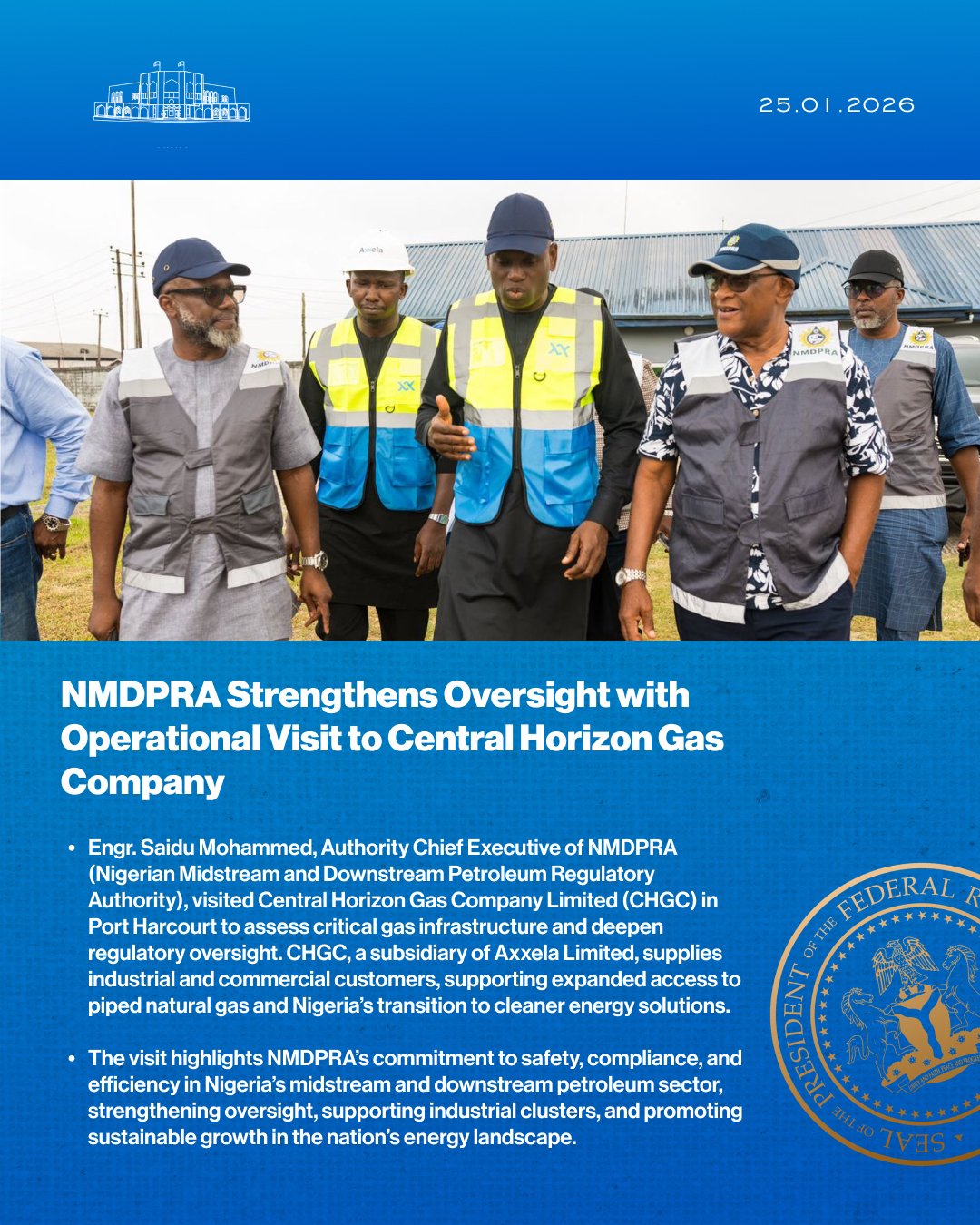 The Nigerian Midstream and Downstream Petroleum Regulatory Authority (NMDPRA) has intensified its regulatory oversight of critical gas infrastructure with an operational visit to Central Horizon Gas Company Limited (CHGC) in Port Harcourt.